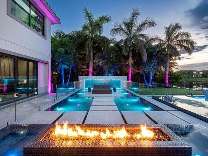 Layer it: warm path/step markers for safety; soft uplights on walls/plants for depth; in-pool LEDs set to a clean white by default. Save simple app scenes for “Evening,” “Party,” and “Quiet Hours.”